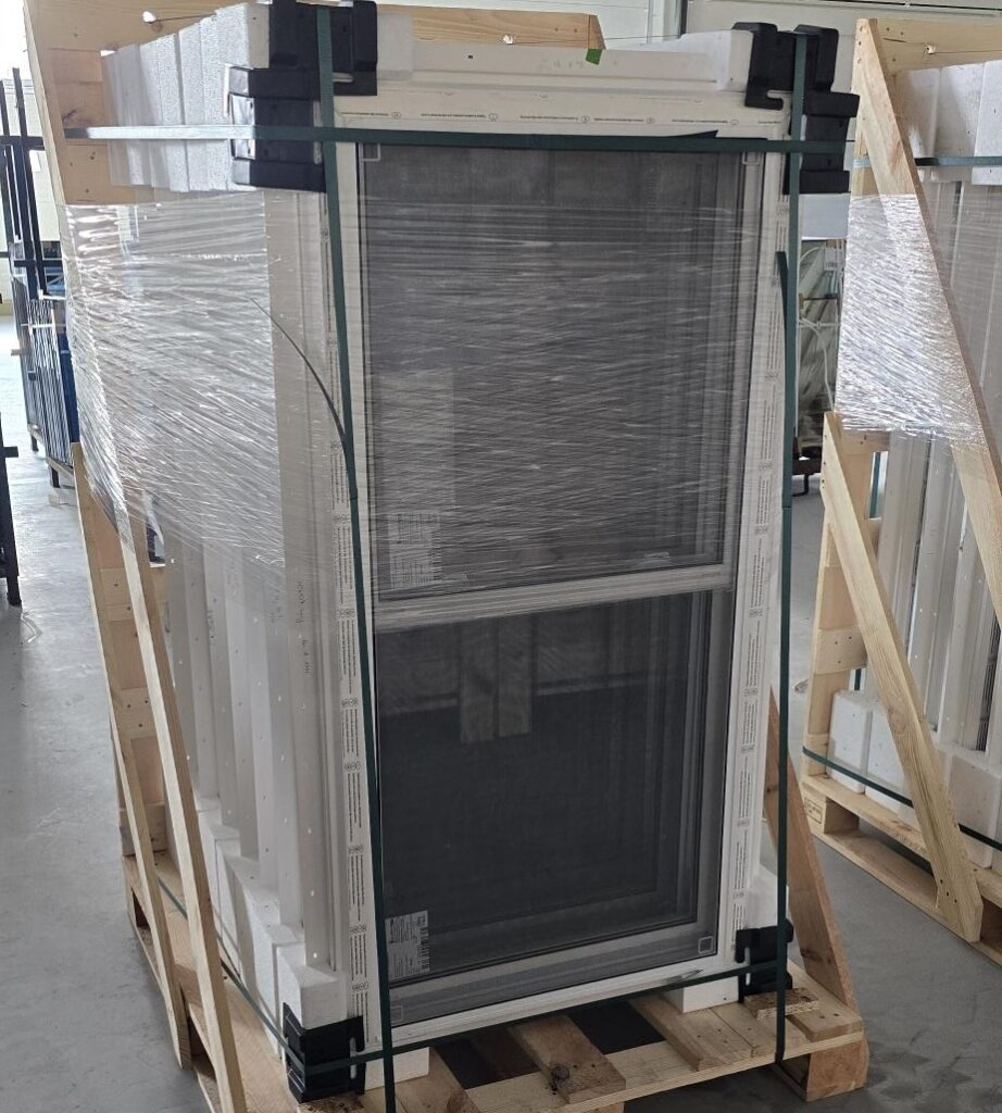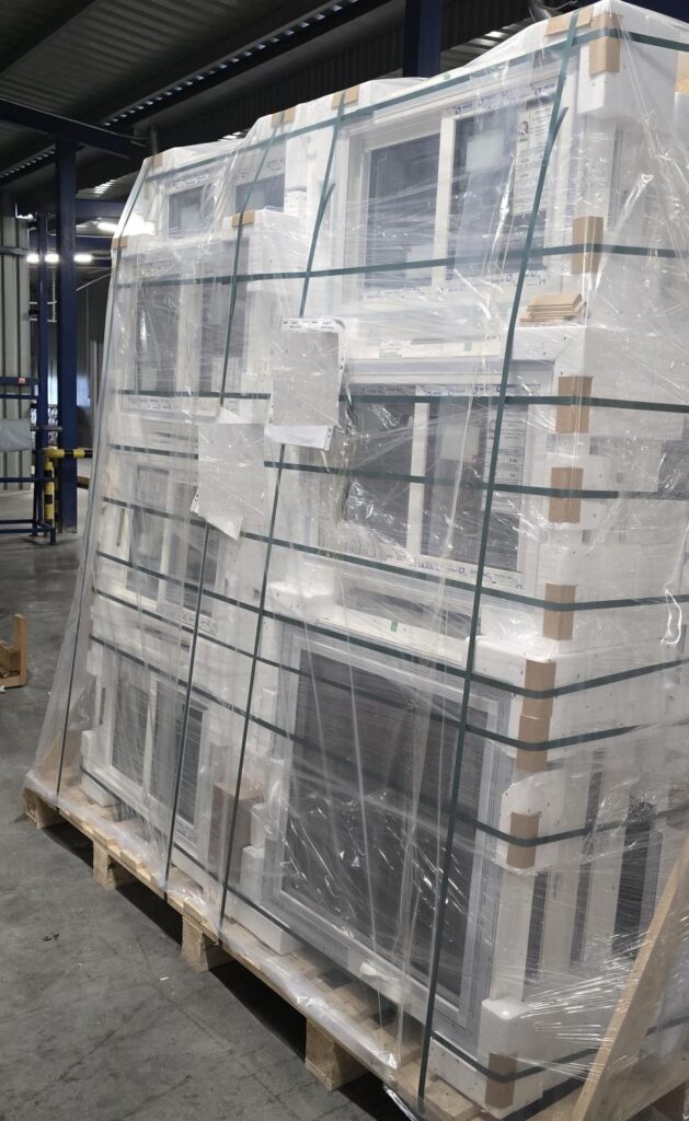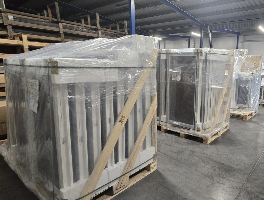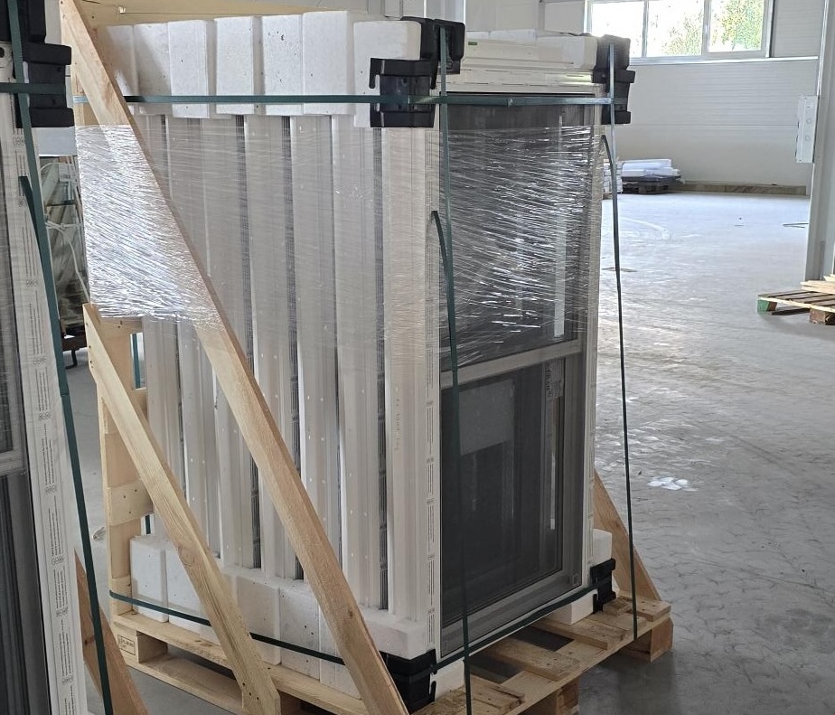 Each window is wrapped in protective film and secured with strong strapping, providing stability and protection against dust, moisture, and scratches.